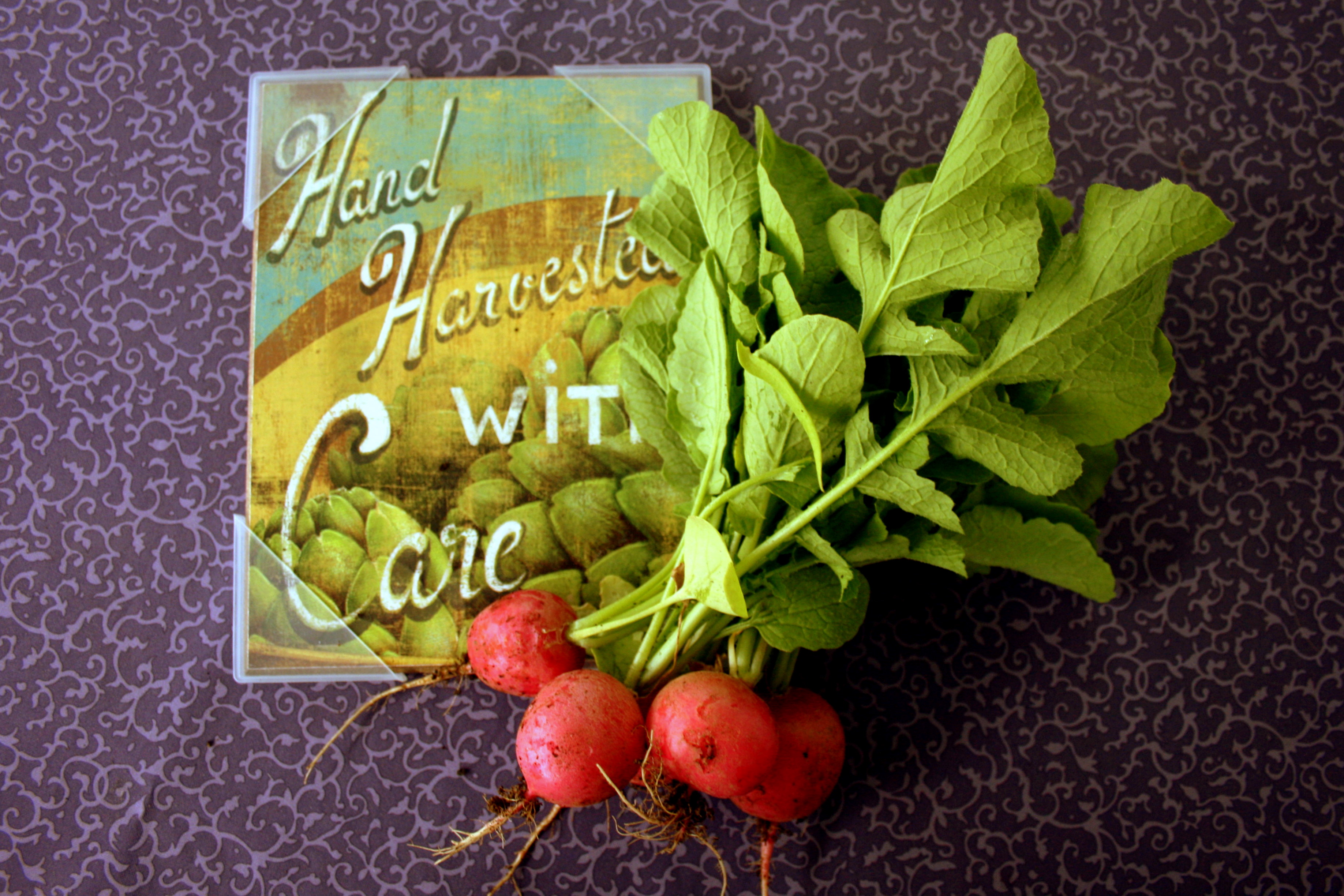 Brr. After the glorious (at moments HOT) weather we’ve been having, it feels like a rainy afternoon in November, not May! Today’s the first CSA pick-up- lots of greens: spinach, arugula, greens mix, lettuce mix, head lettuce (a green romaine), radishes and chives.