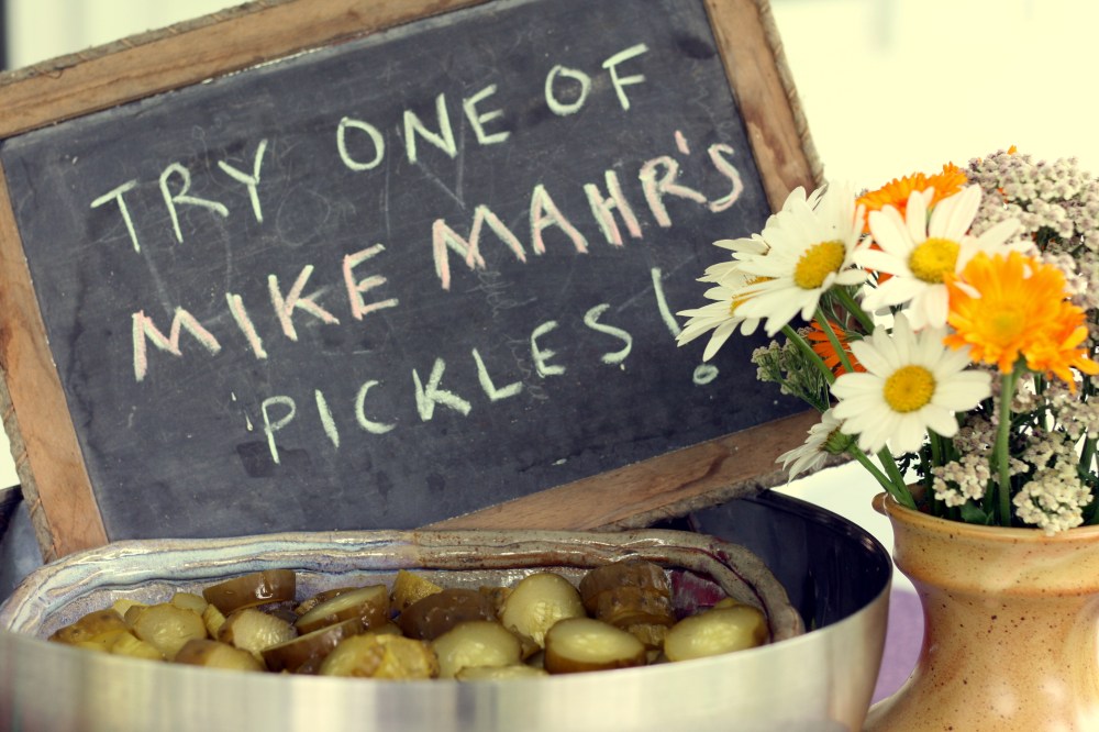 From Mike: The pickle recipe is as simple as it seems—fresh kirby cukes, kosher or pickling salt, non-tap water (or tap water left out for a day or so), fresh garlic, pickling spices or what ever spices you like, fresh dill or dill weed (you can also add dill seeds), clean jar or crock.