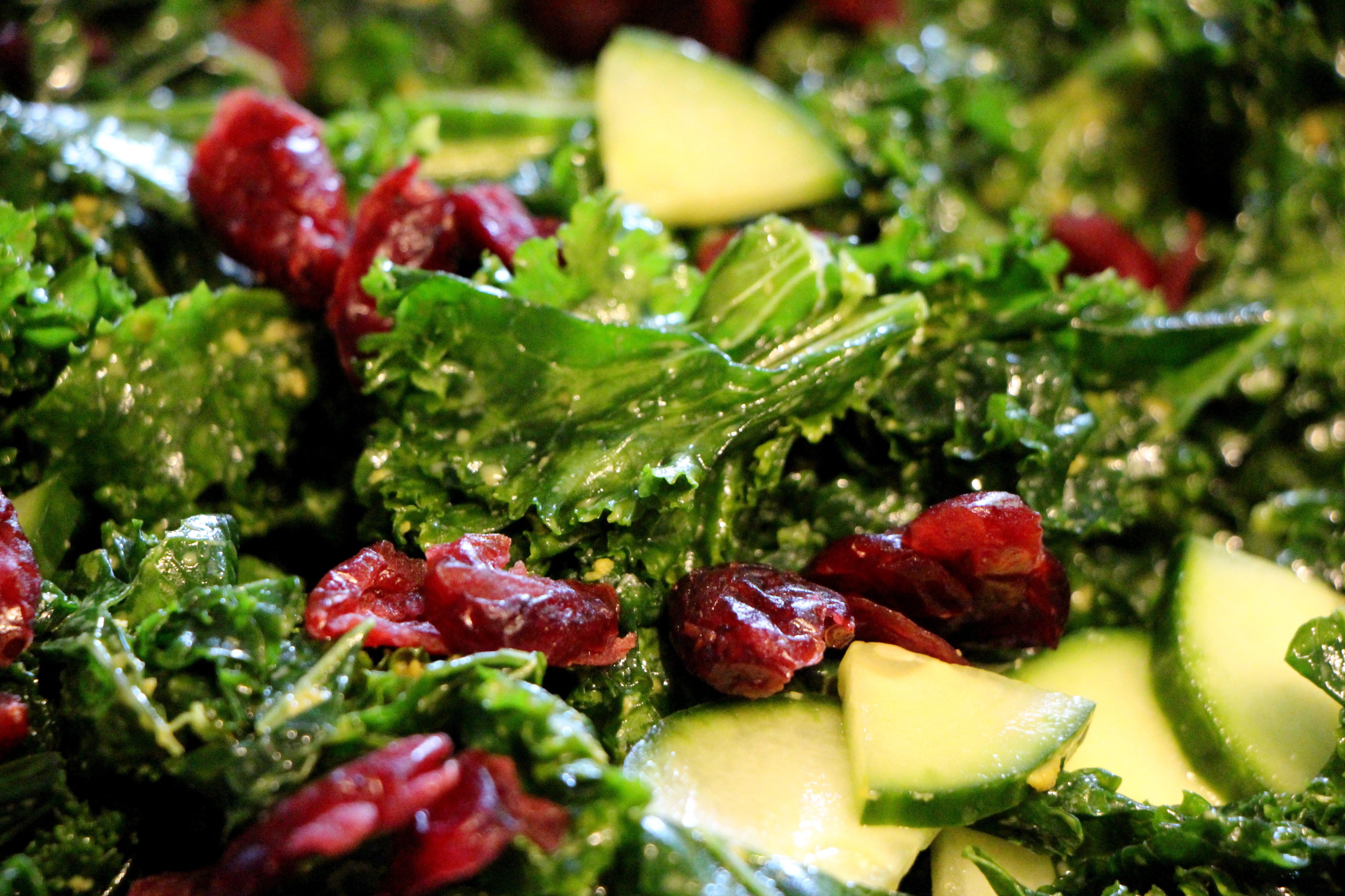 Ana made a delicious kale salad for our Solstice Potluck this weekend. For those of you who missed it (or are craving some more), here’s the recipe: