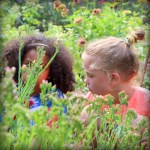 and explore the world that she calls home. I watched her tunnel through rows of tomatoes, jump from compost piles, chase fireflies. I stood with her on the front porch while she leaned toward the edge, letting the rain wash over her. She began carrying small baskets and filling them with flowers and berries and stones. She learned to pick her own tomatoes, sometimes red, sometimes green. And as I bent over a small patch of ground weeding, Hannah would suddenly be by my side, weeding too. Bringing so much joy. Thriving. Releasing butterflies. Smiling. Learning names of the things that matter. Things like dirt.